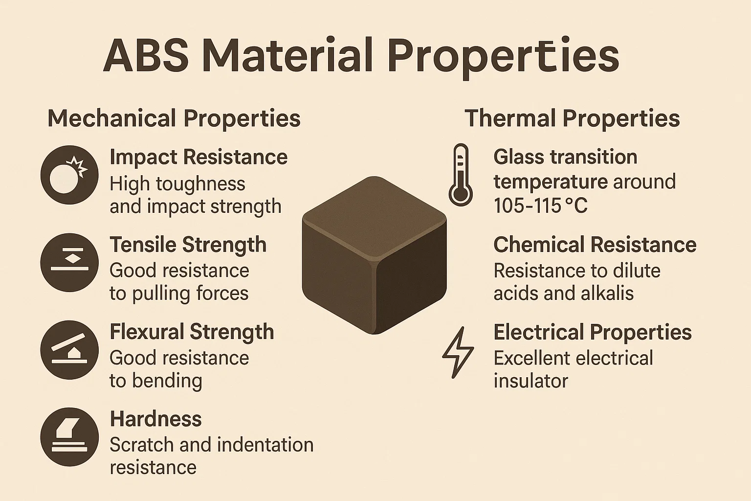 ガラス遷移温度(TG): ABSのTGは通常、105°C〜115°C(約221°F〜239°F)の間に収まります。この温度の下では、材料は硬くガラス状です。その上では、よりゴム状と柔軟になり、処理が可能になります。