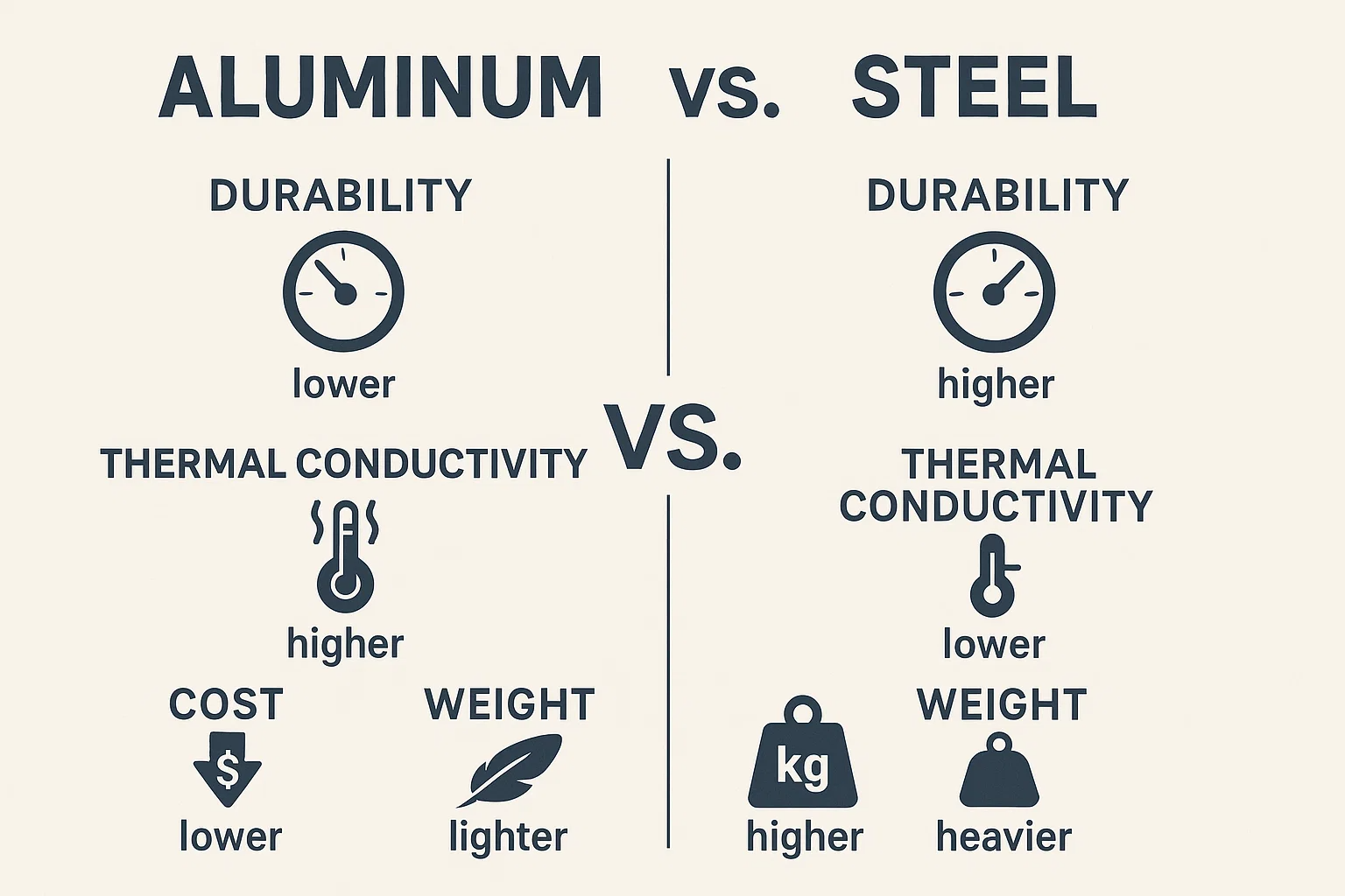 アルミニウムと鋼のいずれかを選択するとき、この決定は、生産に影響を与えるいくつかの重要な違いに帰着します。