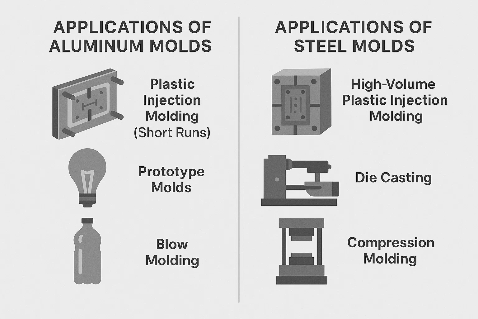 アルミニウムと鋼のカビの間の重要な違い