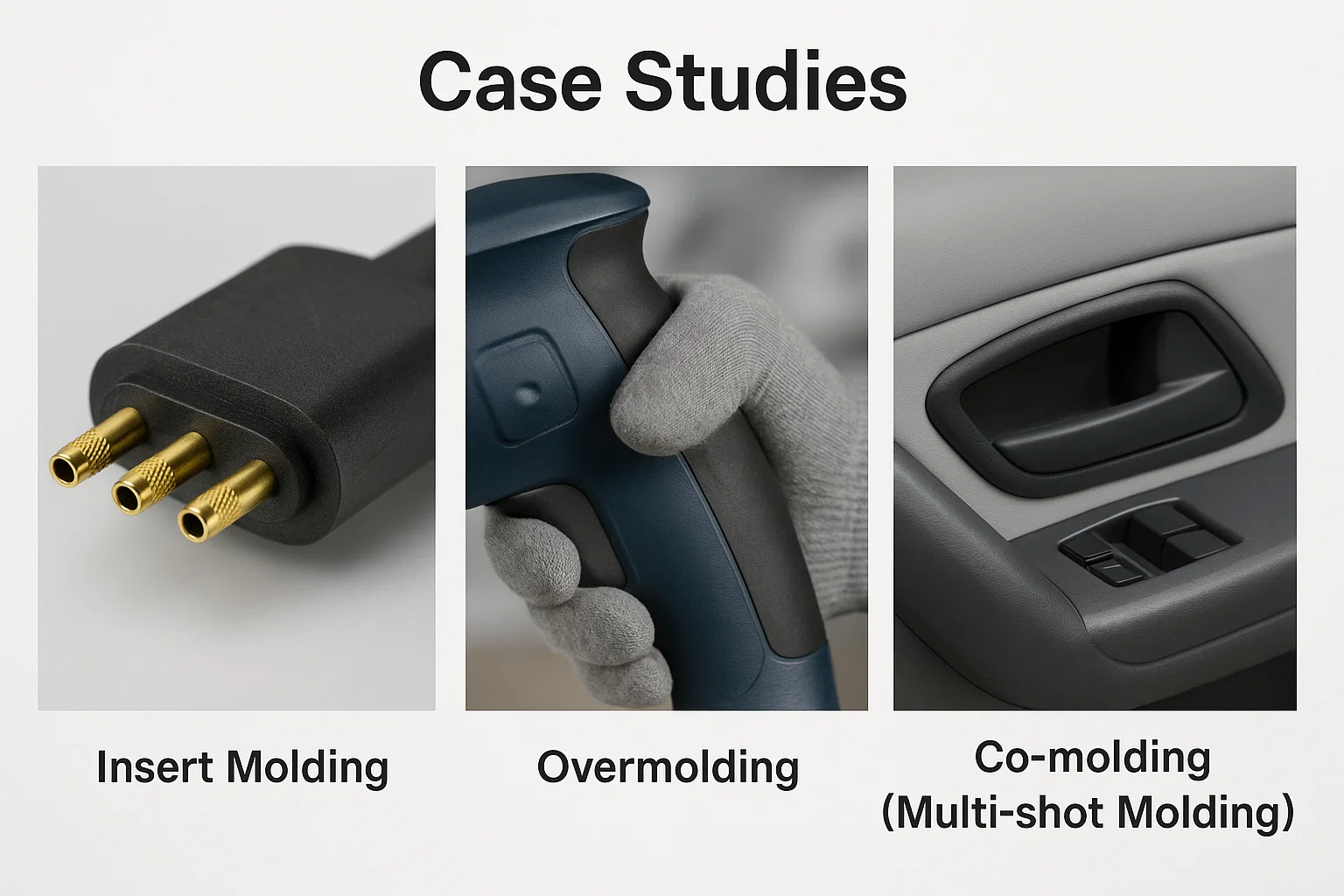各成形プロセスの実用的なアプリケーションと利点を説明するために、革新的で効率的な製品を作成するために挿入成形、オーバーモールディング、共構成が成功裏に採用されている現実世界の例を調査しましょう。