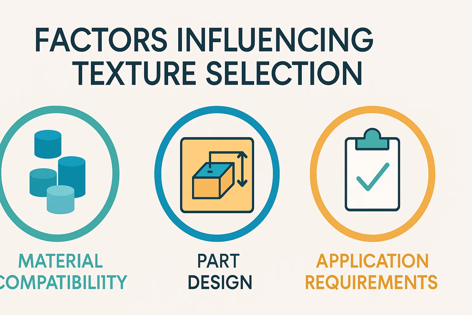 部品に適切な金型テクスチャを選択することは、美学、機能、製造の制約のバランスをとる重要な決定です。選択プロセスは、すべてのサイズに適合したアプローチではなく、3つの重要な要素、パーツの材料、設計、および最終的なアプリケーション要件に大きく依存します。
