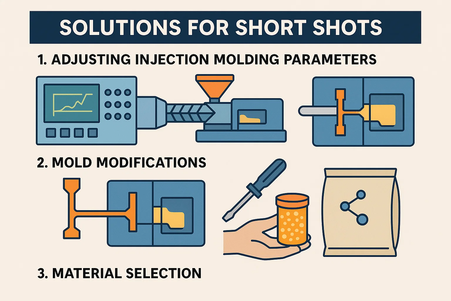 ショートショットを修正する最も迅速で最も一般的な方法は、マシンの設定を調整することです。これらの変更は、多くの場合、生産を長く停止せずにコントロールパネルで行うことができます。